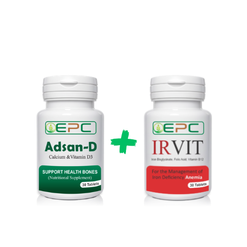 Boost your health with the powerful combination of Adsan D and Irvit Tablets. This combo supports strong bones, improves immunity, and helps fight weakness and anemia. Perfect daily supplement for energy and overall wellness.